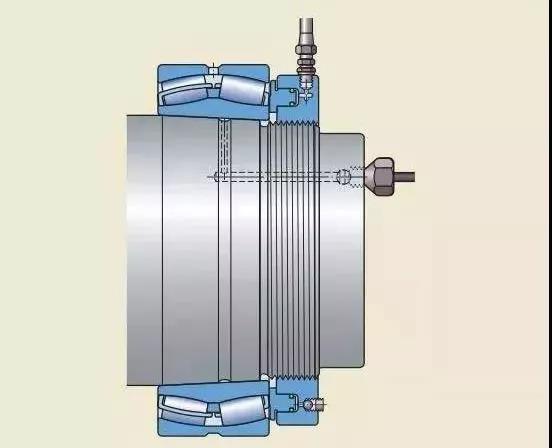 注油法的工作原理是:液压油在高压下通过油孔和油槽,注入轴承和轴径之间的配合面,形成一层油膜。油膜将配合面分开,使得配合面之间的摩擦大幅减少。这种方法通常用于直接把轴承安装在圆锥形轴径上的情况。